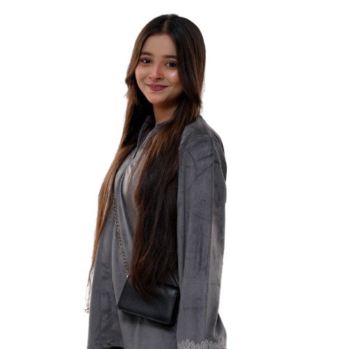 Cool Gray Moon Kurta with Collar Velvet Top & Fusion Trouser Set